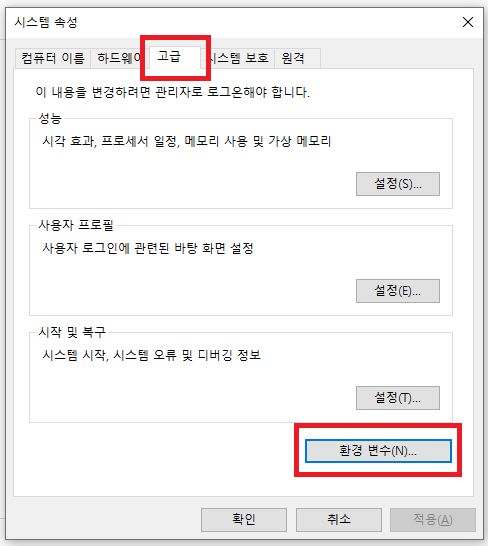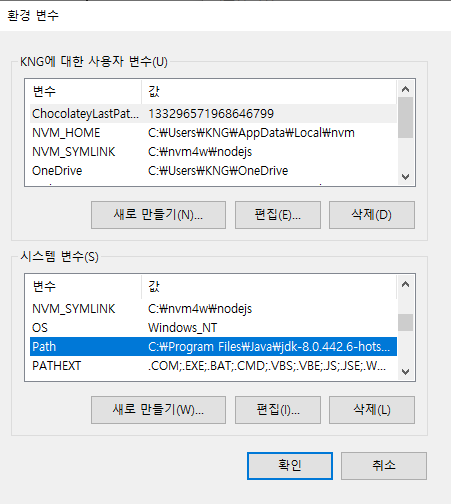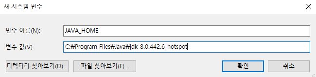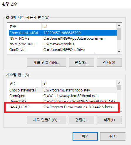 시스템 변수 목록에 JAVA_HOME 이 있는지 확인