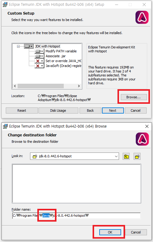 ₩EclipseAdoptium₩ 경로를 ₩Java₩ 로 수정한다.