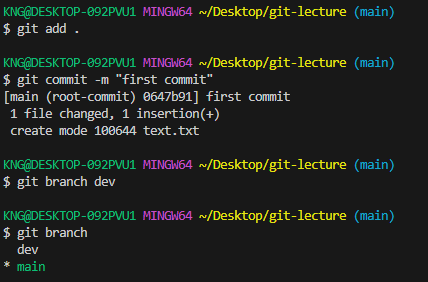 다시 브랜치를 생성하니