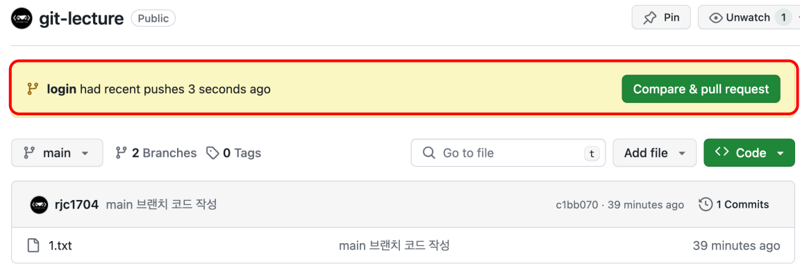 3. 코드 업로드 및 Pull request 생성