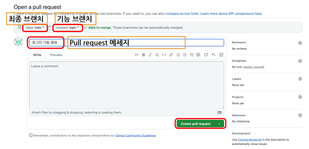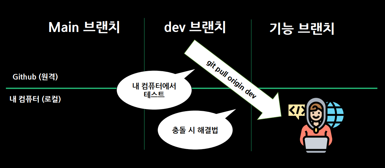 오류 없이 완벽하게 개발해야 main 브랜로 merge 가능
