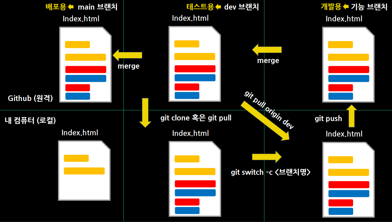 그렇기에, dev 브랜치를 따로 두고 개발하는 것이 안전하다.