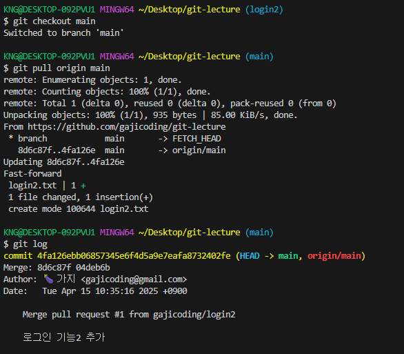 5. 내 로컬에도 반영 ex) git pull origin main