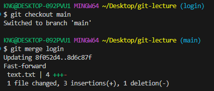 git merge [합칠브랜치명]
