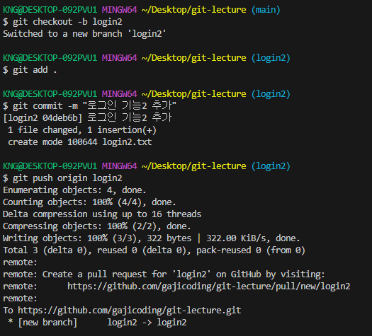 login 브랜치에서 수정, 커밋 후