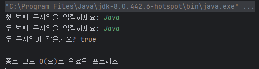 System.out.println("두 문자열이 같은가요? " + result);