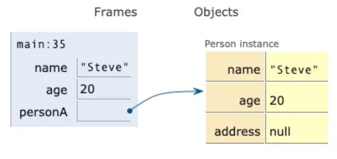 - Stack 영역의 변수가 Heap 영역의 객체를 참조하고 있다.
