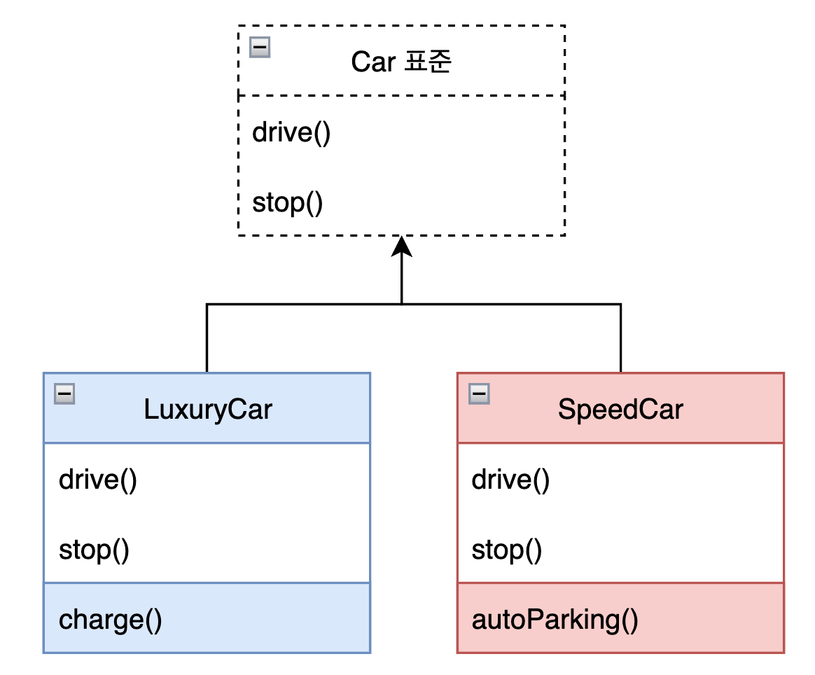 void drive() { // ✅ 인터페이스 규칙 준수