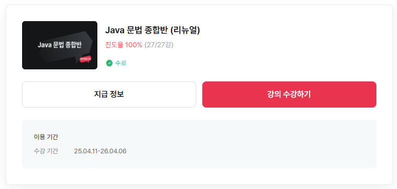 👏 👏 👏 Java 문법 종합반 강의 완강 👏 👏 👏