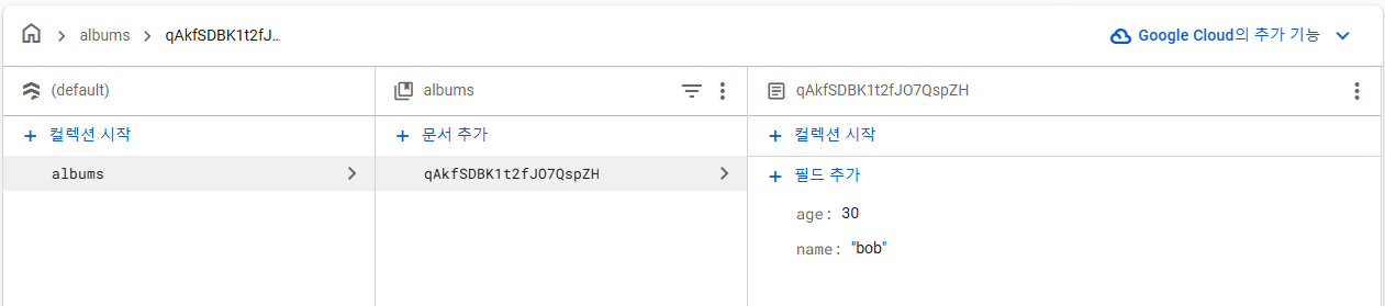 - 홈 > Cloud Firestore > 데이터베이스 만들기