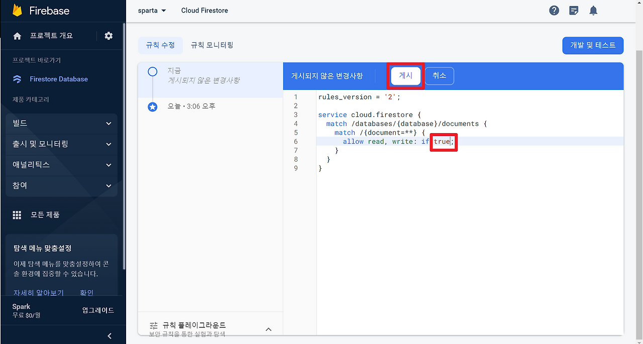 파이어스토어 규칙 수정하기