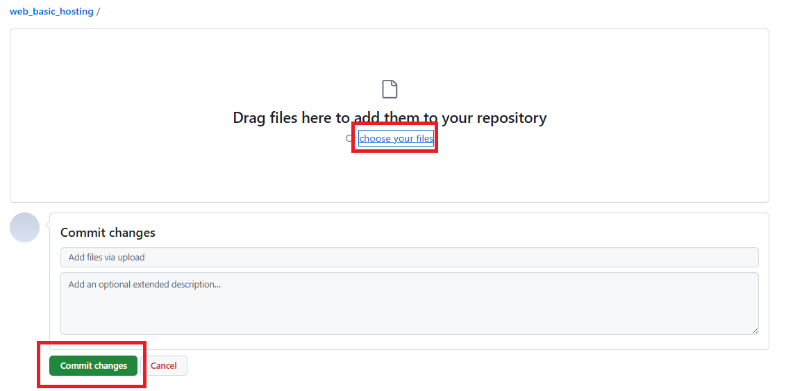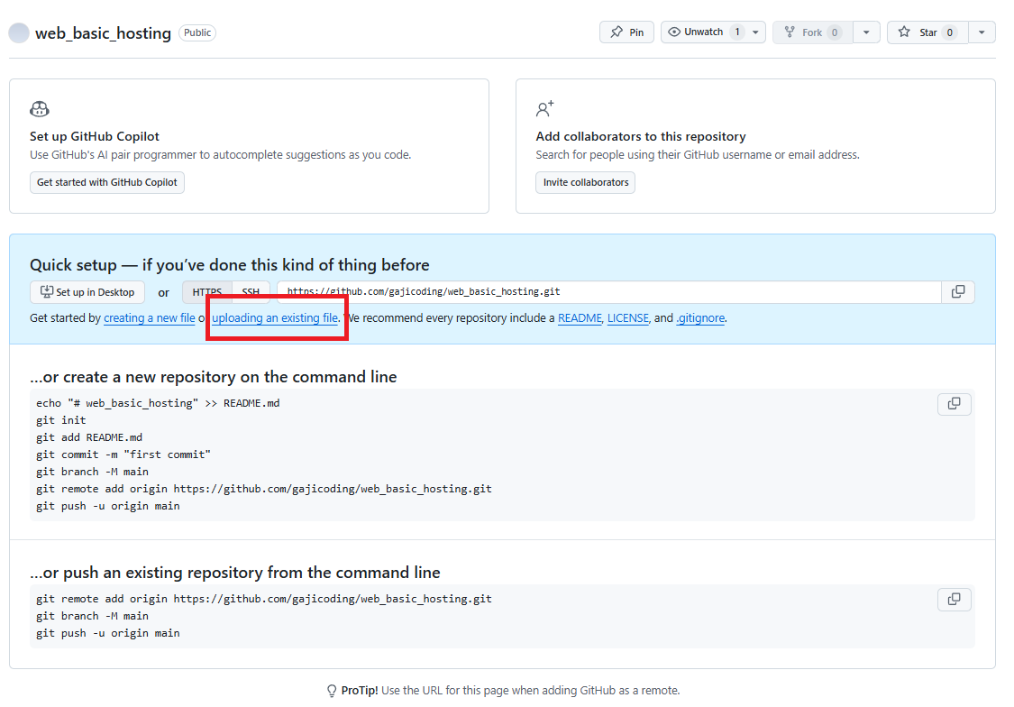 - 생성된 화면에서 uploading an existing file 클릭