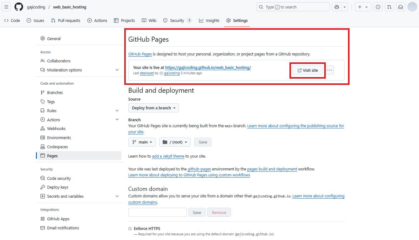 GitHub에서 제공하는 다른 사람들에게 인터넷으로 공유할 수 있는 서비스 (=호스팅 서비스)