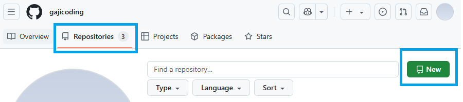 - Repositories(저장소) 탭에서 New 버튼 클릭