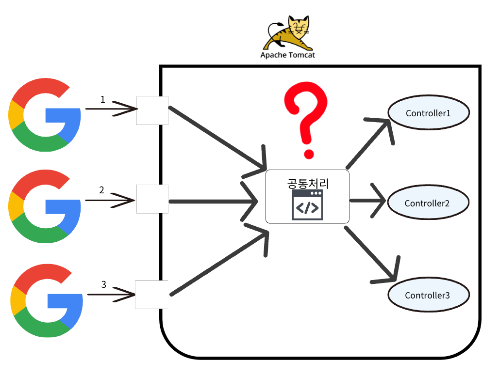- 로깅, 인증 같은 공통 기능을 컨트롤러마다 반복해야 하고, 실수로 빼먹을 수도 있다.