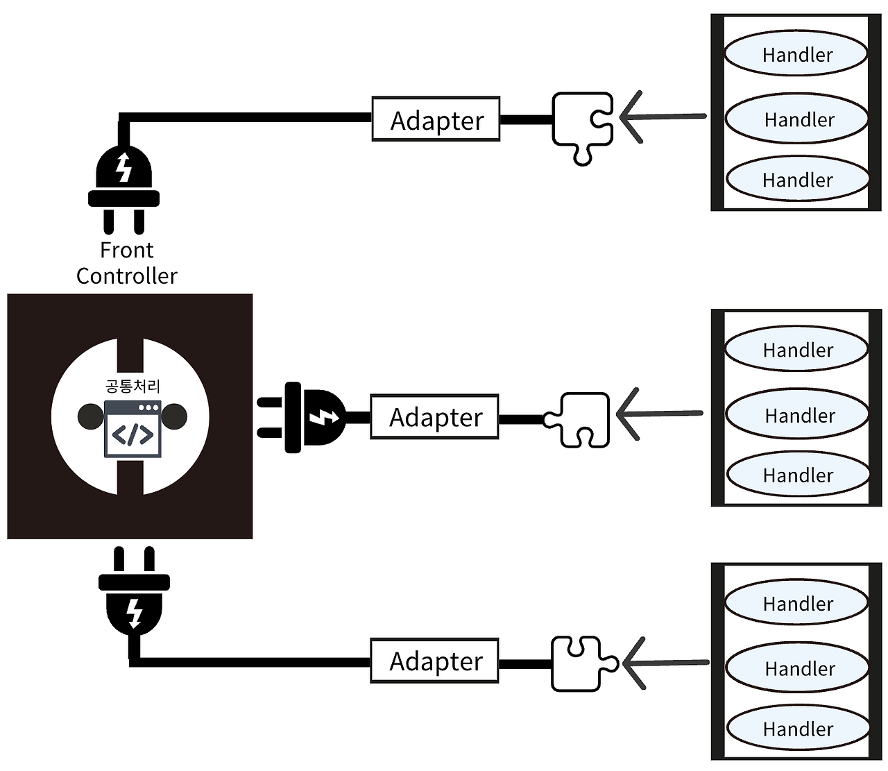 - 어댑터는 컨트롤러와 프론트 컨트롤러 사이를 중계하여 형식을 맞춘다.