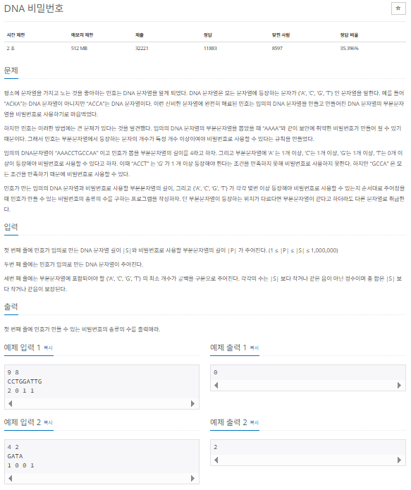 2. [실전 문제] DNA 비밀번호 (백준 12891)