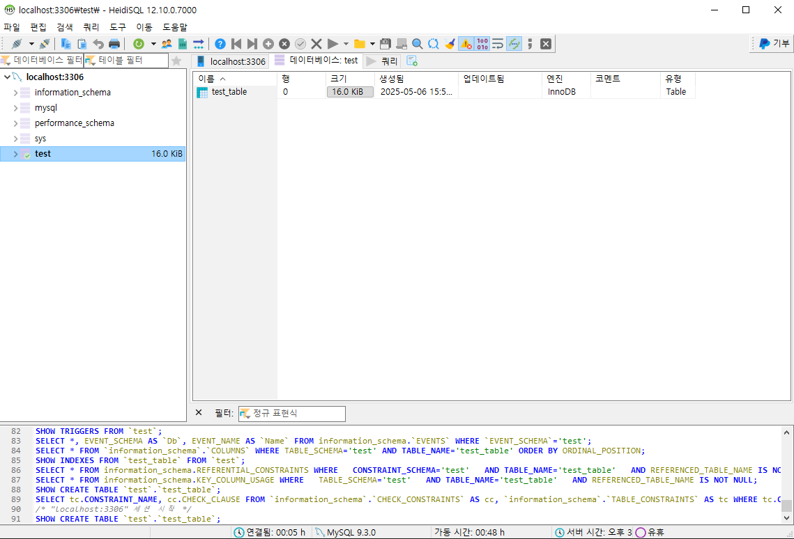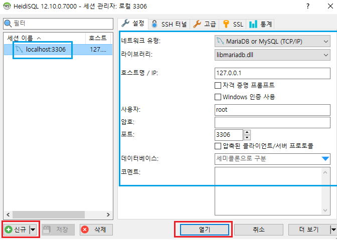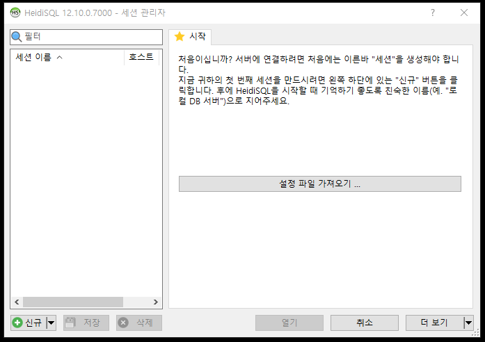 - 가볍고, 직관적이라서 필자의 경우 MySQL Work bench 보다 HeidiSQL 을 선호한다.