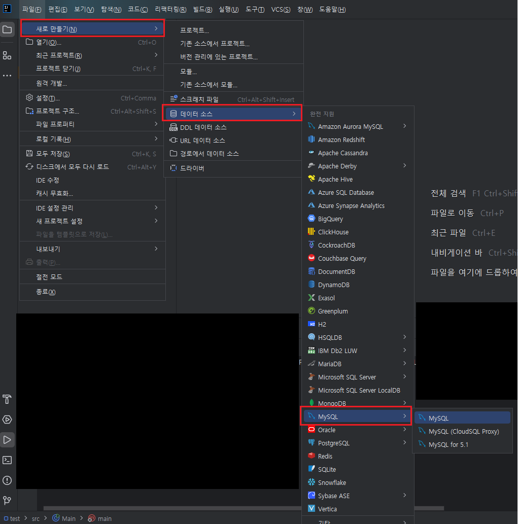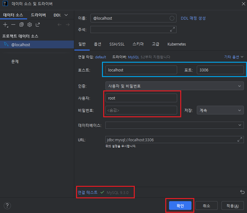 - 새로 만들기 > 데이터 소스 > MySQL > MySQL