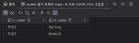 -- student 들이 등록한 major와 관련된 정보 조회 (INNER JOIN) 교집합