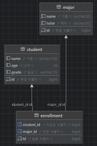 id BIGINT AUTO_INCREMENT PRIMARY KEY COMMENT '학생 식별자',