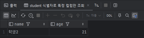 UPDATE student SET age = 21 WHERE name = '학생1';