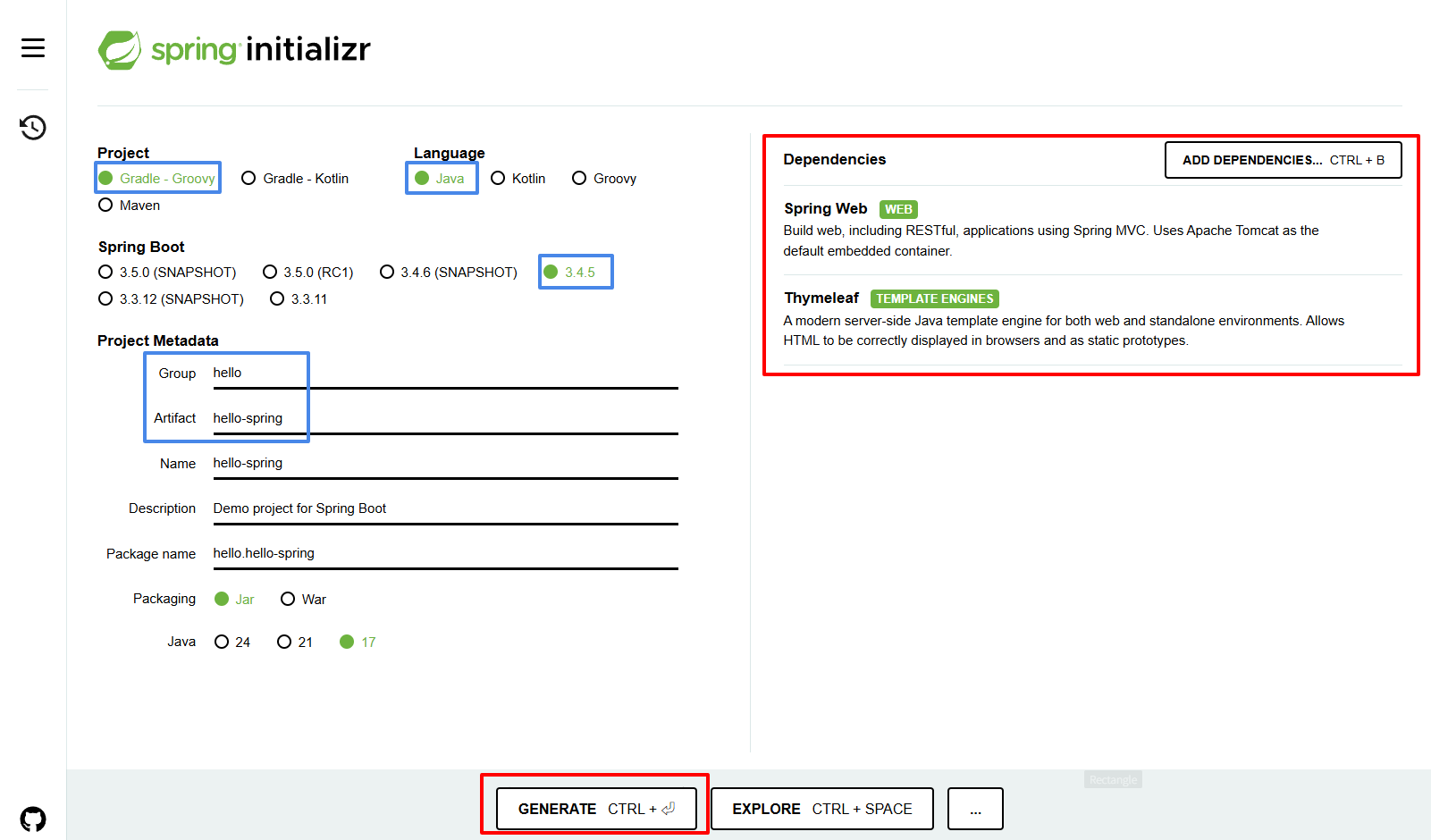 - spring-boot-starter-thymeleaf: 타임리프 템플릿 엔진(View)