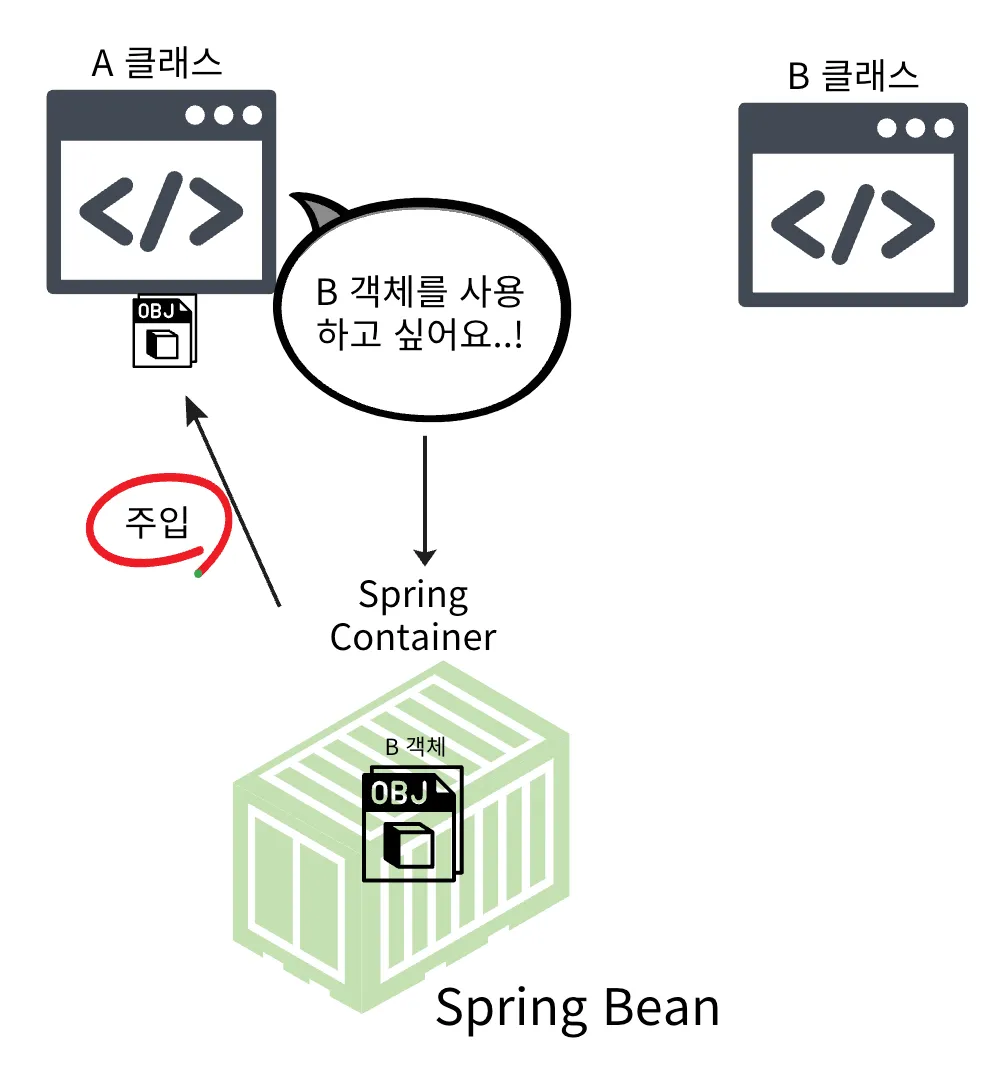- 객체가 필요한 다른 객체를 스스로 생성하거나 관리하지 않고, 외부에서 주입하는 방식으로 의존성을 해결하는 방식