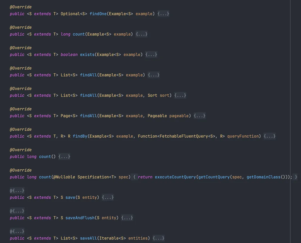 - JpaRepository를 상속하면, Spring이 내부적으로 이 SimpleJpaRepository 클래스를 사용해 실제 동작을 수행한다.