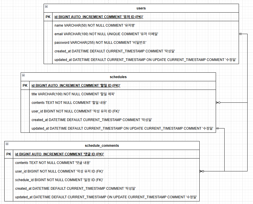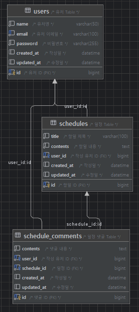 - 댓글과 일정은 연관관계를 가진다.