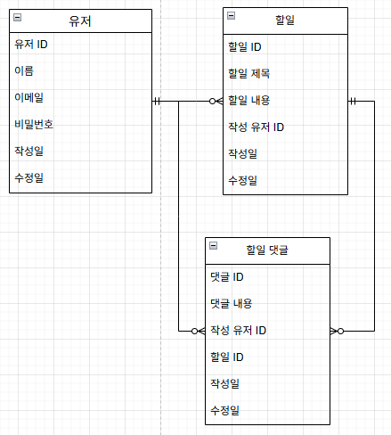 - 작성 유저명, 할일 제목, 할일 내용, 작성일, 수정일