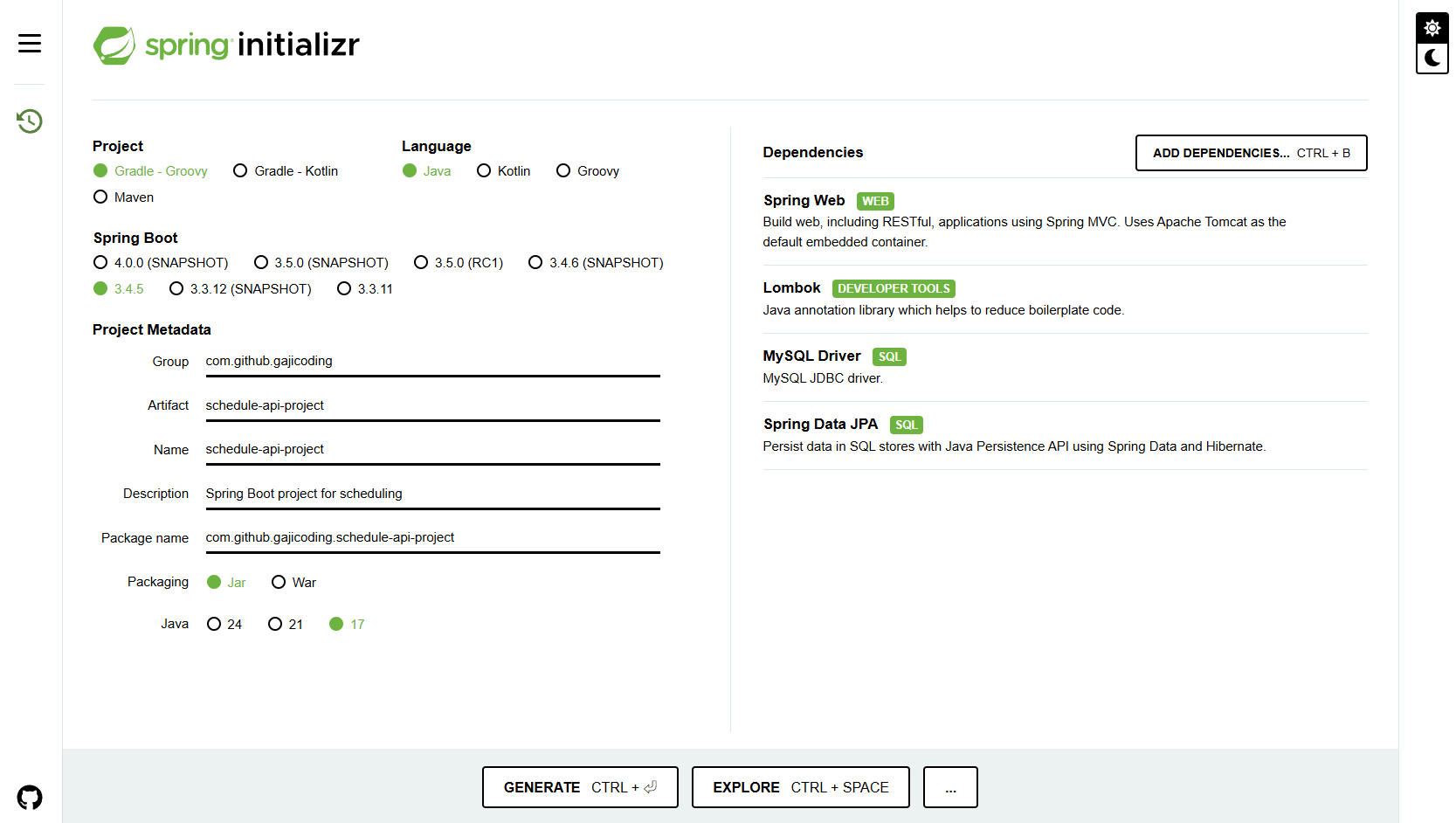CREATE DATABASE IF NOT EXISTS schedule;