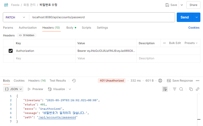 - 응답 메시지에 Spring Security의 exceptionHandling - authenticationEntryPoint 예외가 출력됨