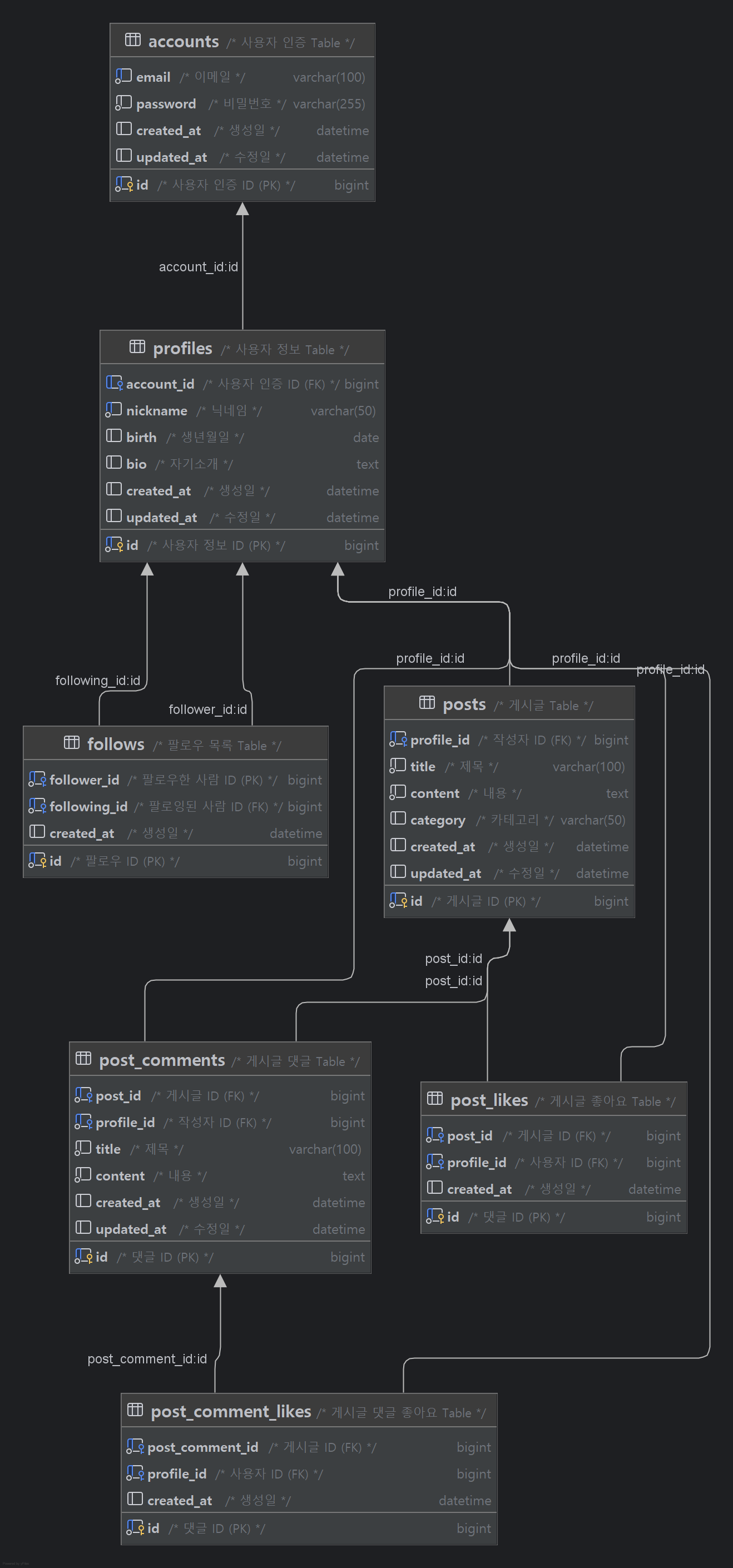 profile_id BIGINT NOT NULL COMMENT '작성자 ID (FK)',