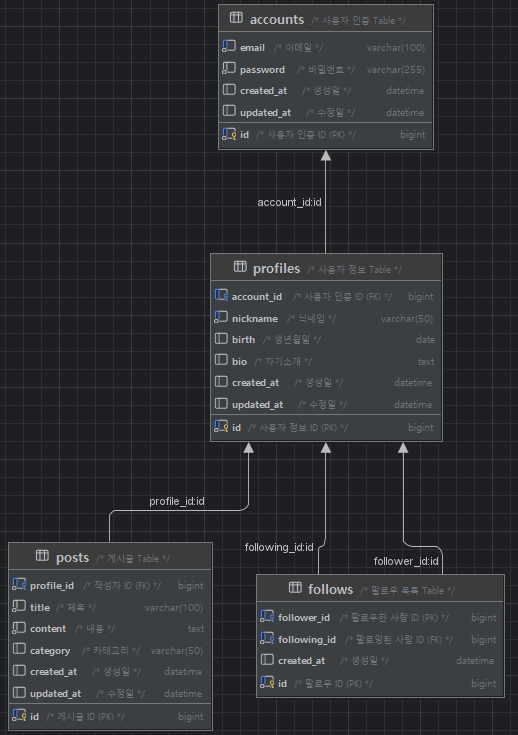 id BIGINT AUTO_INCREMENT PRIMARY KEY COMMENT '팔로우 ID (PK)',