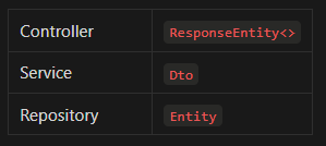 3계층 아키텍처(Controller → Service → Repository) 반환 타입