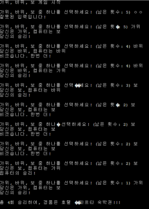 4. 매판마다 진행한 가위 바위 보의 승패에 대한 결과를 출력됩니다.
