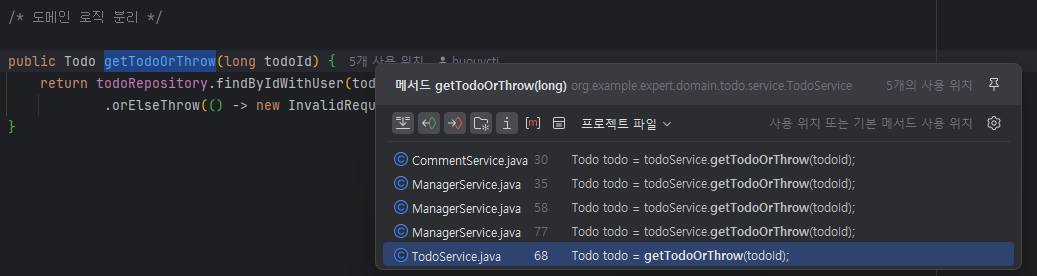 - Todo 관련 공통 로직은 TodoService 에 정의