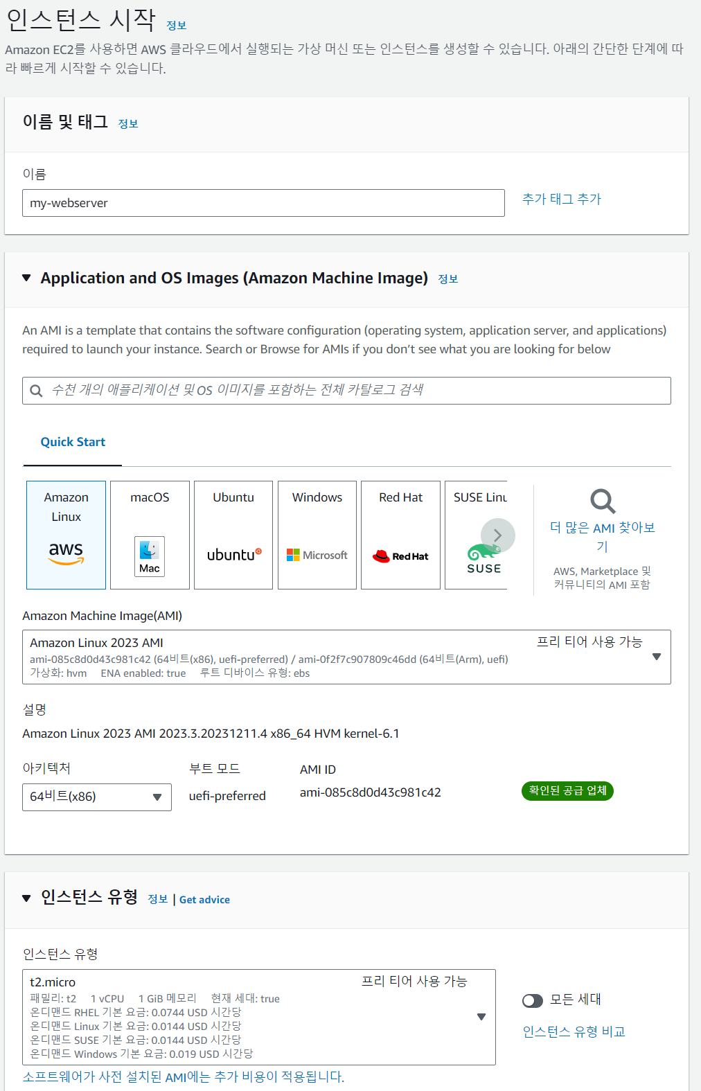- Amazon Machine Image(AMI) : Amazon Linux 2023 AMI