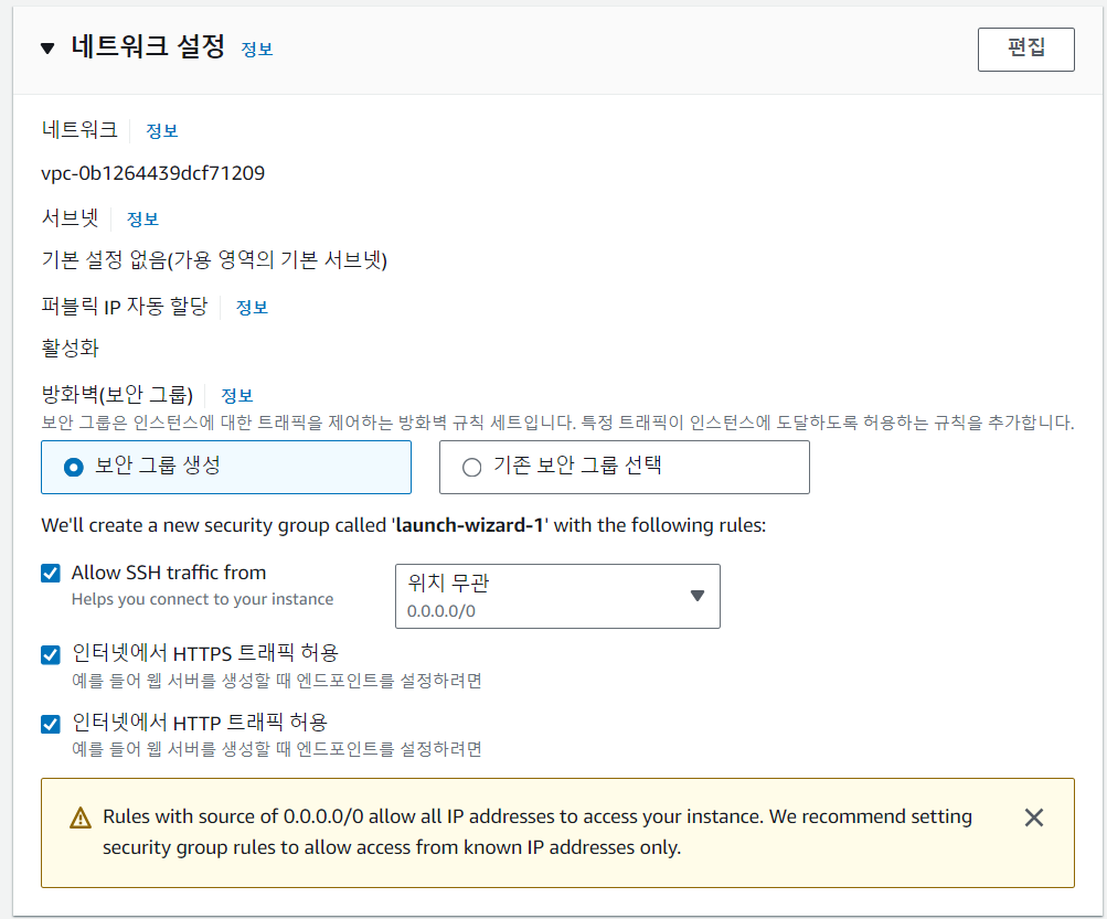 - 인터넷에서 HTTP 트래픽 허용 선택