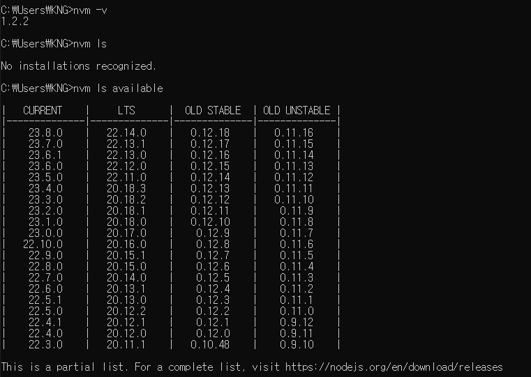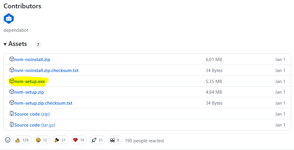 위 주소에서 Windows용 nvm 설치파일을 다운로드한다.