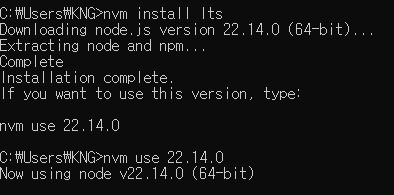 설치가 완료되면 cmd 를 열고 기본 명령어를 실행해본다.