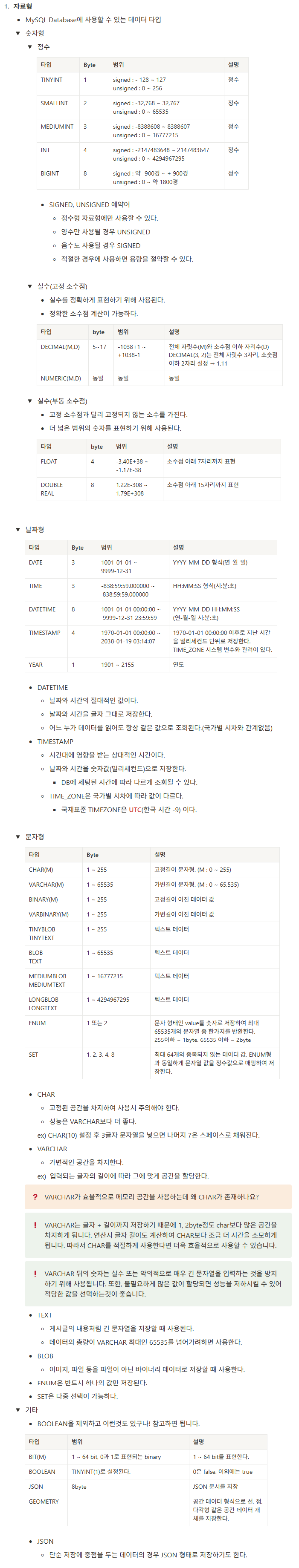 📕 목차SQL (Structured Query Language)MySQL 살펴보기1. SQL (Structured Query Language)SQL (Structured Query Language)SQL은 관계형 데이터베이스 관리 시스템(RDBMS)에서 데이터를 정의, 조작, 제어, 조회하기 위해 사용되는 표준 프로그래밍 언어이다. SQL 특징관계형 데이터베이스와의 상호작용을 표준화하고 효율적으로 수행할 수 있게 해준다.데이터베이스에서 원하는 정보를 추출하고 분석할 수 있게 해준다.대부분의 RDBMS(MySQL, PostgreSQL, Oracle 등)가 SQL을 지원한다.표준 SQL은 존재하지만, 제품마다 조금씩의 차이(함수명)가 존재한다.SQL 명령문은 대소문자를 구분하지 않고, 대문자로 사용하면 가..
