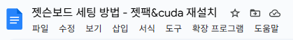 대학교 LAB에서Jetson 보드 세팅을 해본 경험이 있는데 혹시 모를 나중을 대비해블로그에 다시 정리해보고자 한다. ㅡㅡㅡ주의ㅡㅡㅡ2023.02.08 에 작성된 문서이다.💻 목차준비물NVIDIA SDK manager 설치SDK manager 실행 후 로그인Step 1 - 젯슨 보드 연결 후 버전 선택Step 2Step 3 - 설치 진행Cuda 설치1. 준비물호스트pc(우분투 pc), 젯슨 보드키보드 마우스, 모니터 2개, 랜선 등 젯슨보드 분해 후 리커버리, 파워 버튼 찾아두기호스트 pc와 젯슨보드는 같은 공유기의 랜선으로 연결호스트pc 용량 확보 (30GB 정도) 젯슨 보드는 이렇게 연결해주었다. 왼쪽부터 파워선, 랜선, HDMI선, 5핀 (micro B) 선이 연결되어있다. 리커버리, 파워 버..