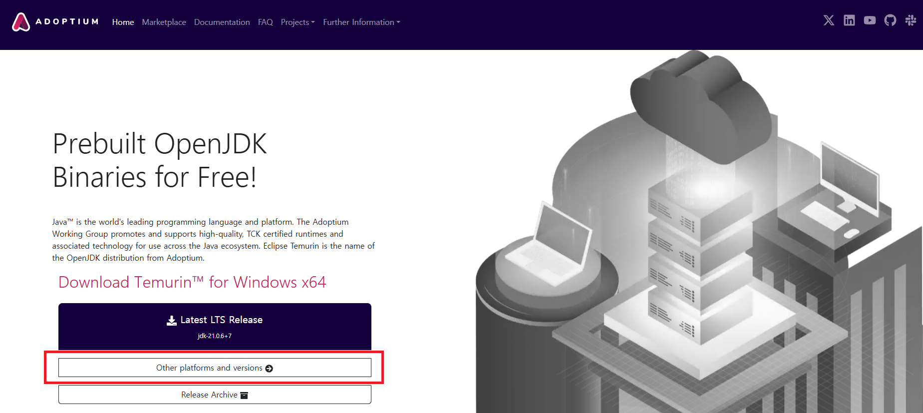 💡 과거에는 Oracle JDK를 기본으로 설치했지만, 이제 유료화 되었으므로 Open JDK를 설치한다.1. 설치설치 링크: https://adoptium.net/ Home | AdoptiumThe Adoptium® Working Group The Adoptium Working Group promotes and supports high-quality runtimes and associated technology for use across the Java ecosystem. Our vision is to meet the needs of Eclipse and the broader Java community by providing runtimesadoptium.net Other platforms and ..
